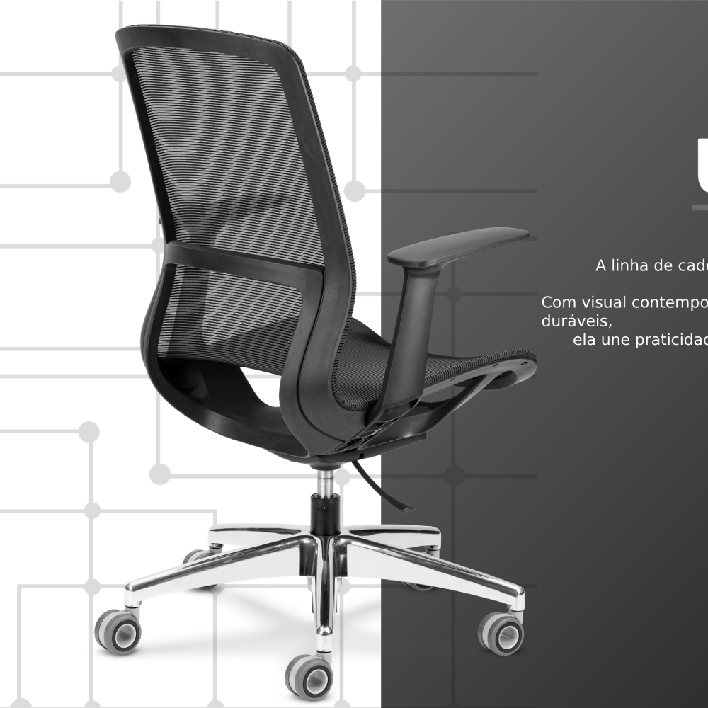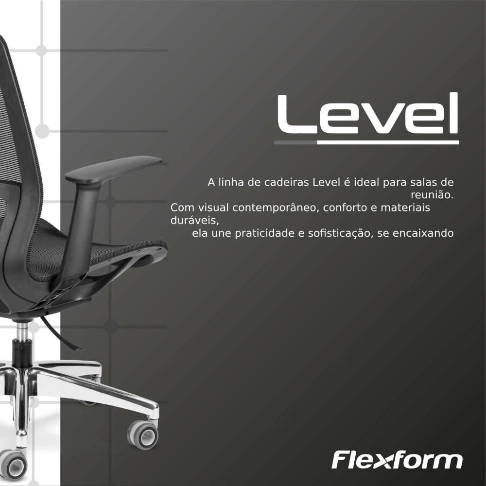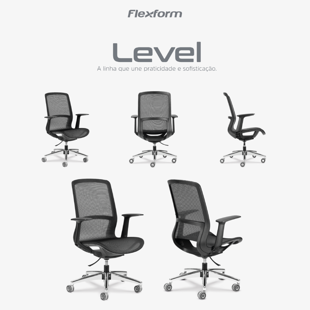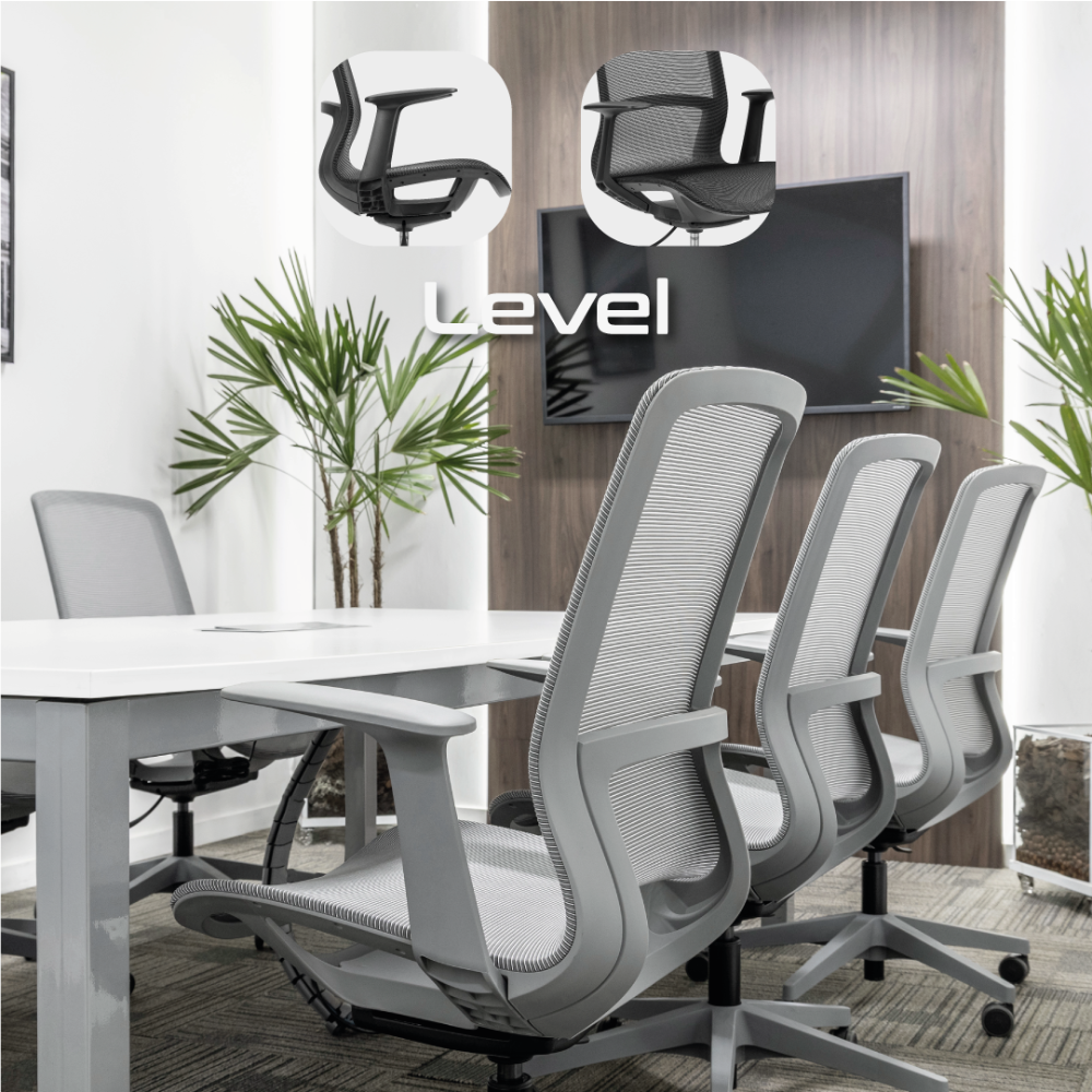 A linha de cadeira Level é ideal para salas de reunião, unindo design moderno e conforto ergonômico. Com linhas clean e materiais duráveis, combina praticidade e sofisticação, adaptando-se perfeitamente a ambientes corporativos.